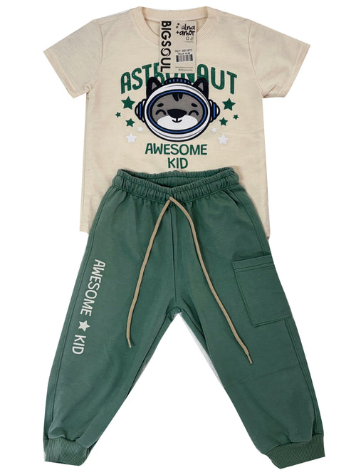BB1870 CONJUNTO CAMISETA MARFIL /JOGGER VERDE
