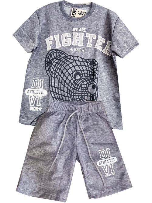 CJ1905 CONJUNTO CAMISETA OVER SIZE AZUL OSCURO/ JOGGER GRIS JASPE -