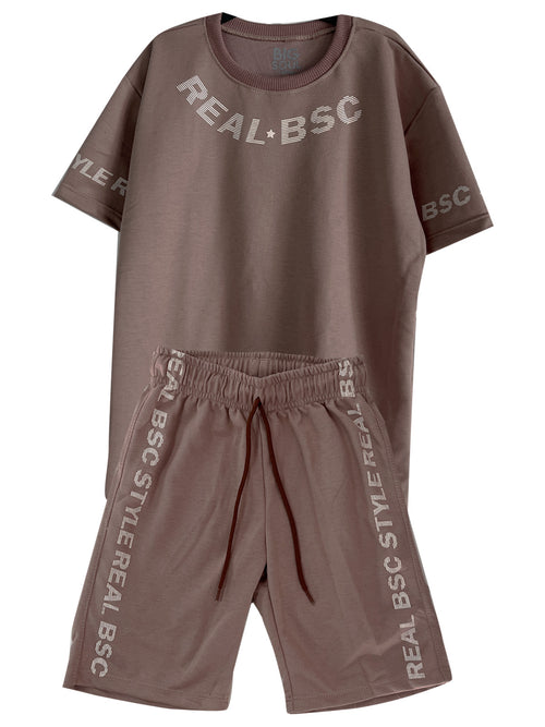 CS1923 CONJUNTO UNICOLOR CAMISILLA / BERMUDA TELA TEXTURA COLOR TABACO -