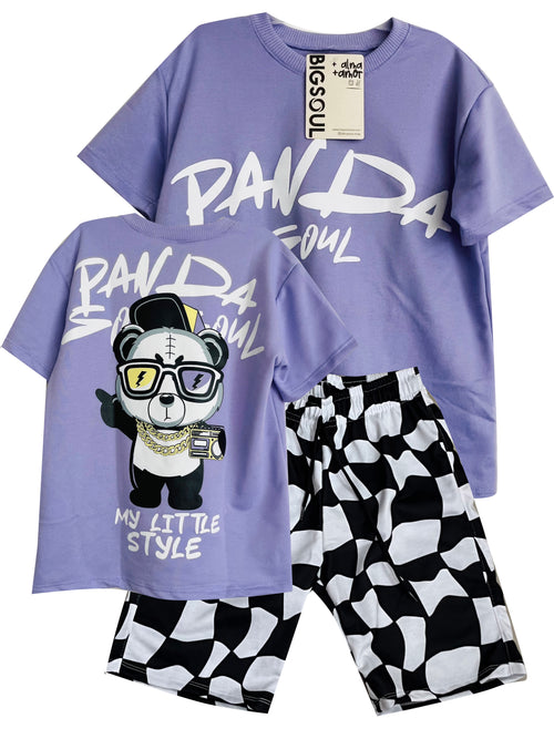 STYLE COOL CONJUNTO CAMISETA OVER SIZE AMARILLO / BERMUDA NEGRO ESTAMPADO -