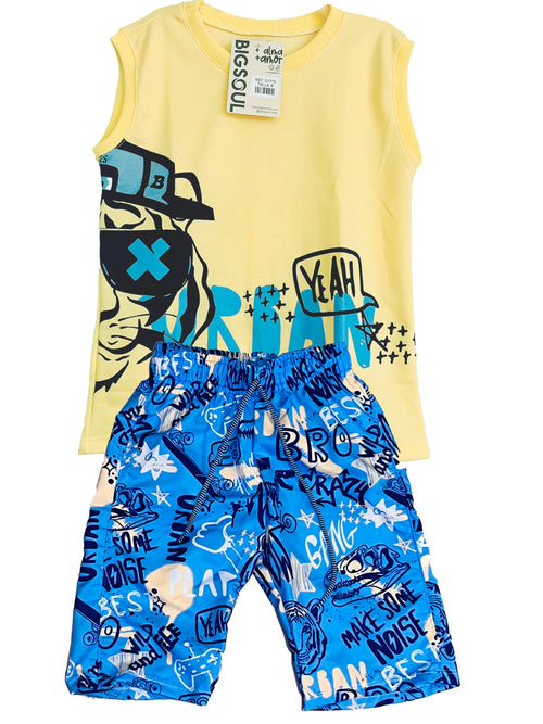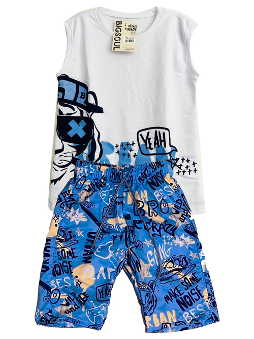 CONJUNTO BEBE CAMISETA AZUL CIELO /BERMUDA GRIS JASPE -